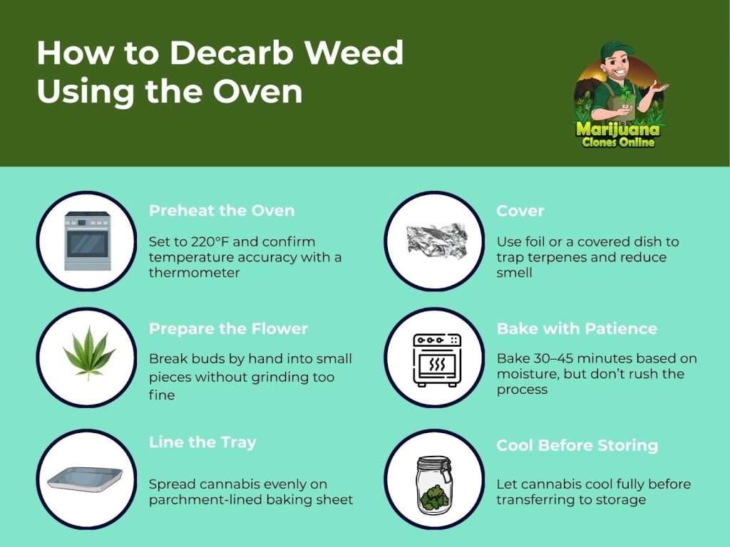 Fully cured flower performs best. If your buds feel spongy or sticky, they need more drying time before entering the oven. Starting with cured THCa flower from Marijuana Clones Online sets you up for a smooth, even process.