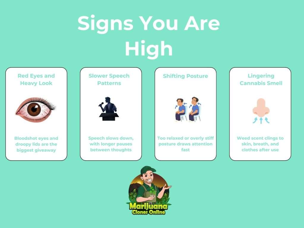 THC can heighten emotions, especially if your tolerance is low or the setting feels uncomfortable. You might laugh more easily or feel paranoid around people who wouldn’t understand. That emotional spike is part of what makes you feel high, but it’s also what makes you look high to someone else.