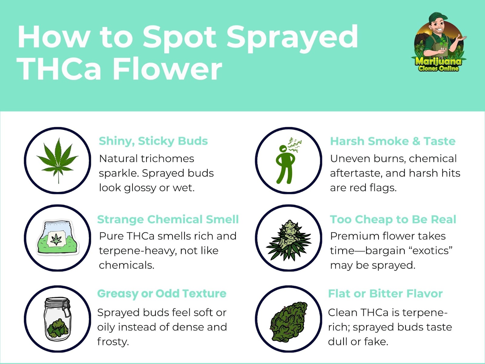Many cannabis products look the part but don’t deliver the quality. Sprayed THCa flower is designed to pass as premium, which means spotting it requires attention to detail. If you want to protect your lungs and your wallet, here’s how to separate the real from the fake.